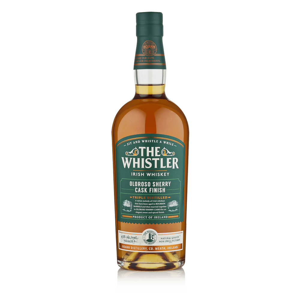 The first of three cask finished blends from the Boann Distillery’s ‘Whistler Irish Whiskey Range’. The Whistler Oloroso Sherry Cask Blend is comprised of malt and grain whiskey which has then been finished in a Solera Oloroso Sherry Butt for nine months.